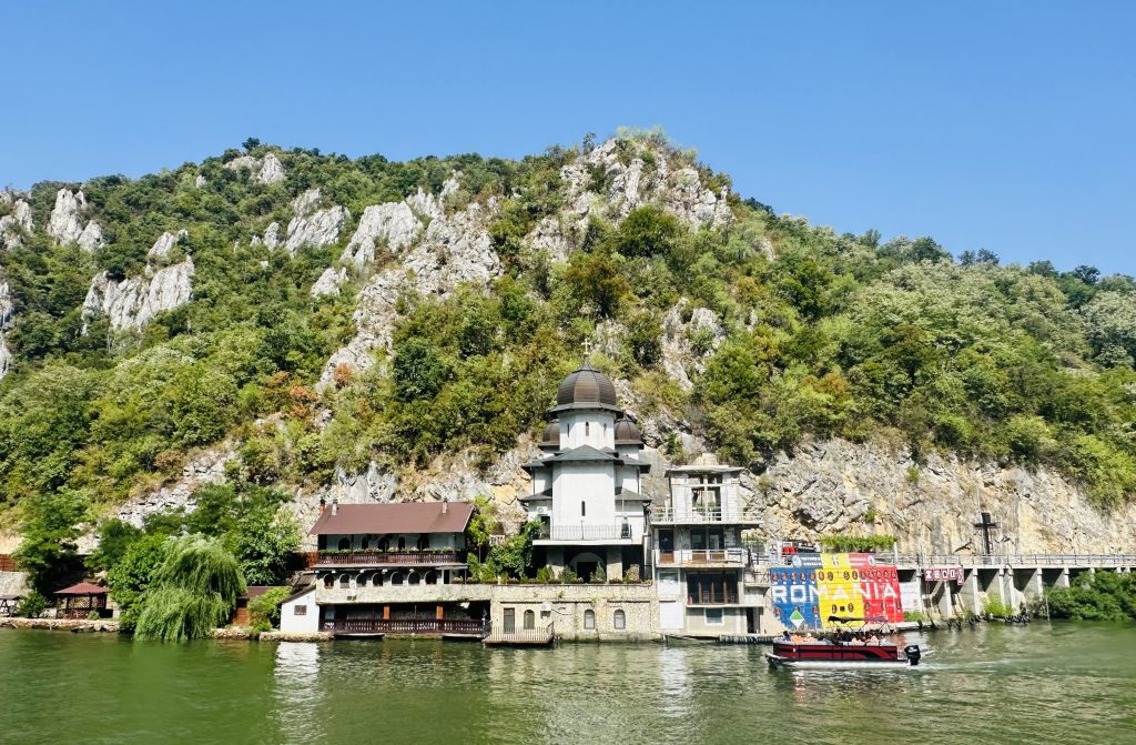 姆拉科尼亚修道院位于多瑙河罗马尼亚一侧的铁门峡谷,依偎在群山与河流之间。白色建筑倒映水面,在雄浑的自然景观中显得宁静而庄严。