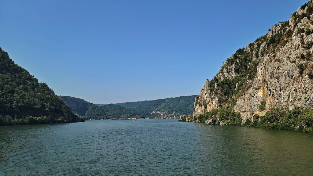 铁门峡(Iron Gate)是多瑙河上最壮丽、也最具观赏性的航段之一。游船缓缓驶入峡谷,两岸岩壁陡然收紧,灰白色的石灰岩峭壁直插云霄,层层褶皱如同被岁月刻出的史诗。河面在此变得深邃而平静,倒映着悬崖、云影与偶尔掠过的飞鸟以及峡谷间散落着古老遗迹,岩壁上的特拉扬浮雕静静俯瞰河流,远处中世纪城堡残垣若隐若现,仿佛守望着千年的水道。