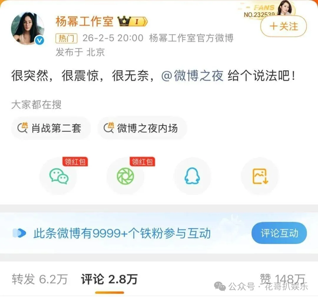杨幂微博之夜抢C位遭舆论嘲笑怒骂花哥扒娱乐
