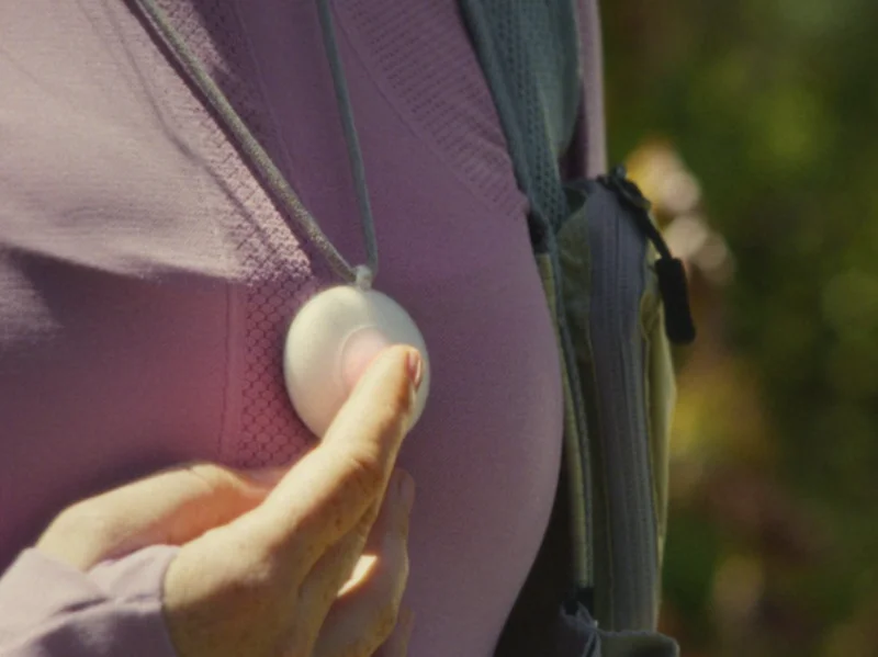 一个白色的、圆润的、看起来介于“医疗警报器”和“电子宠物”之间的项链式挂坠。