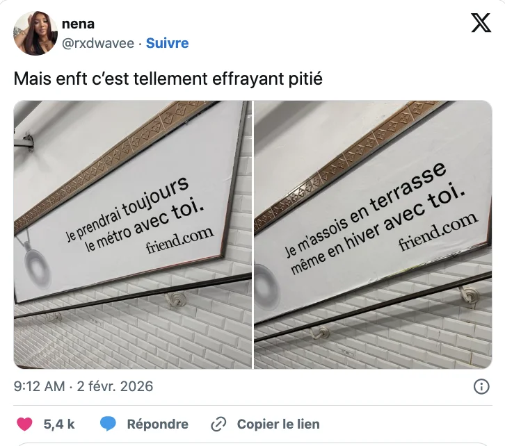 讲真,很难不注意到这个广告,除了因为它的铺设规模相当惊人外,不少巴黎人也后背一凉,毕竟,这些话实在太懂现代人的孤独了。