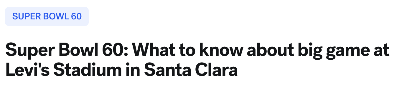 据2月8日报道,2026年超级碗(Super Bowl LX)第60届美国橄榄球大赛将于2月8日(周日)在加州圣克拉拉的Levi’s Stadium举行,这也是该体育场继2016年后第二次承办超级碗。