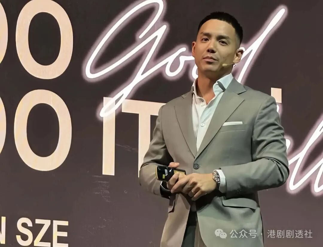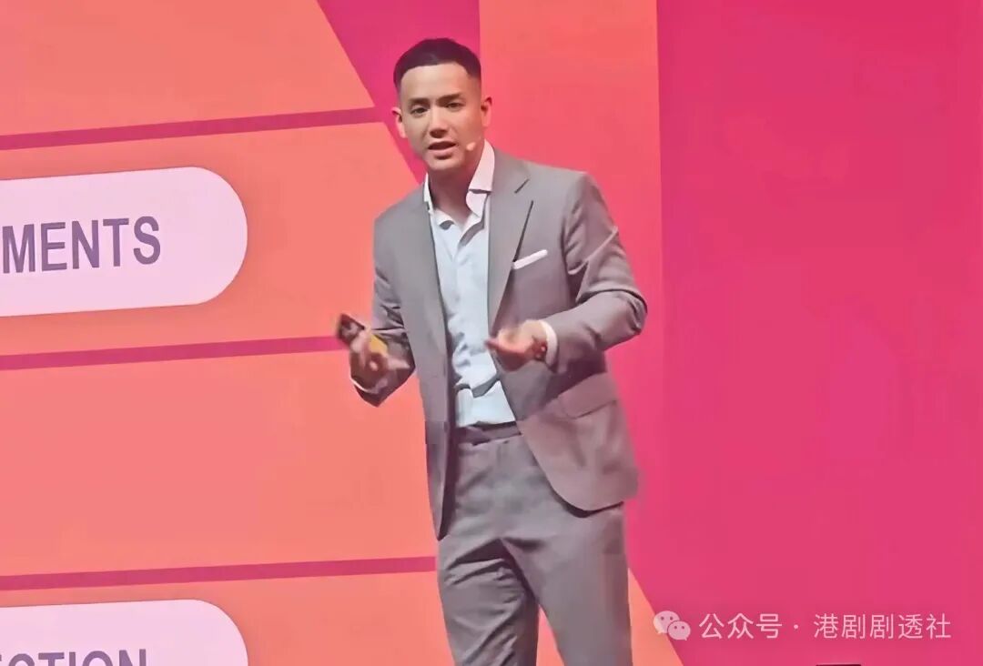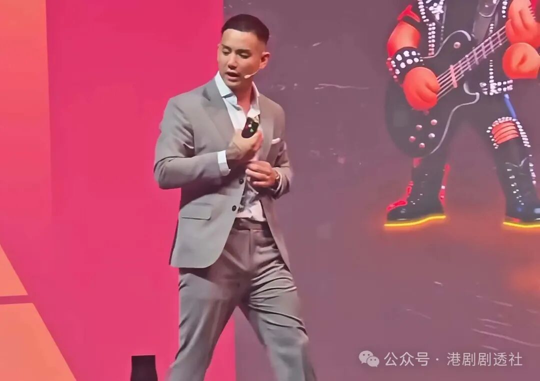 从网上曝光的照片可以看到,演讲当天施隽贤穿着西装套装,非常淡定的站在台上,外形依旧特别帅气。