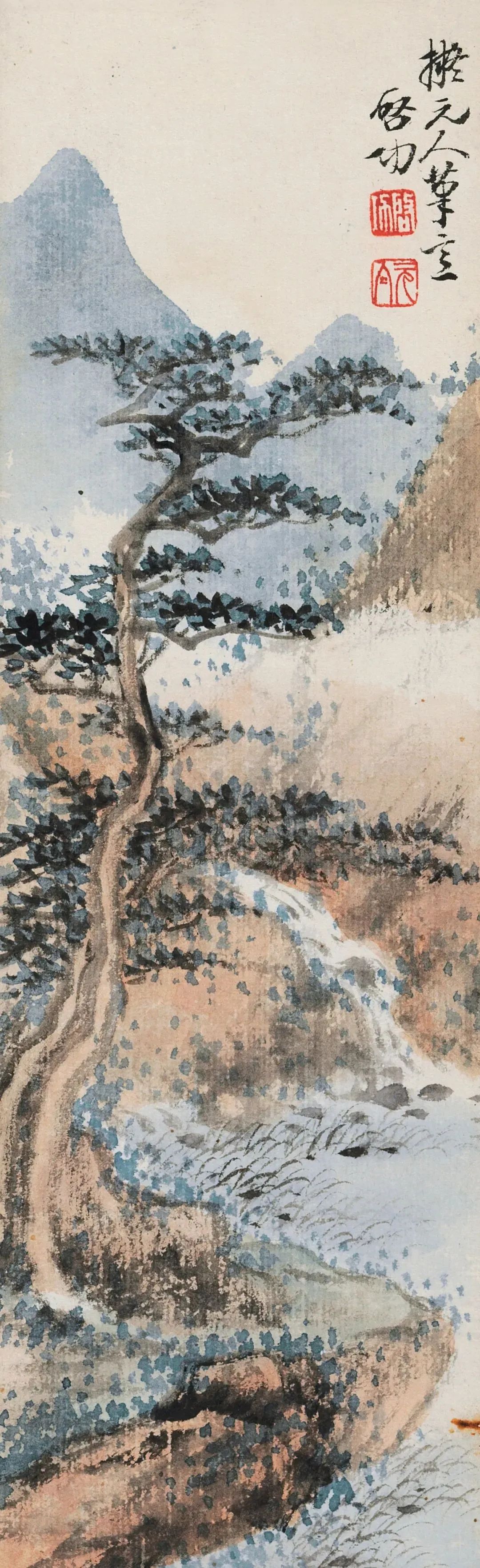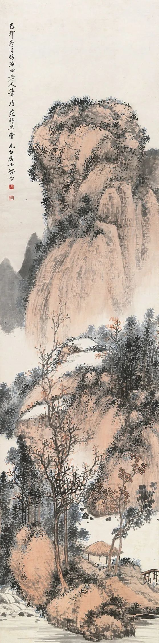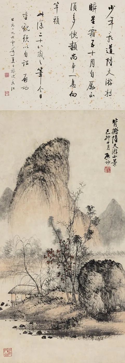 拟古仿古是启功先生绘画创作的一个重要内容。在启功存世的山水画中有许多这类作品,如“拟元人笔意”,“拟元人小景”,“拟黄鹤山樵笔意”,“仿石涛”,“仿蓝瑛”,“元白法古山水册”等等。