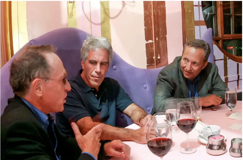 登上美国各大媒体头条的照片,中间是爱泼斯坦,右边是今天主角哈佛前校长劳伦斯·萨默斯,他同时也是哈佛肯尼迪学院莫萨瓦尔-拉赫马尼商业与政府中心主任