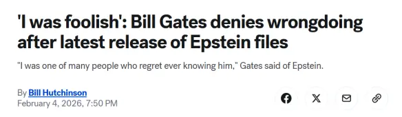 面对铺天盖地的曝光,当事人终于在前几天接受澳大利亚媒体采访时明确表态:自己曾与爱泼斯坦有过接触,是出于对全球健康事业筹资的考虑,但如今看来那是一个错误的选择。他后悔结识了爱泼斯坦、并明确否认任何不当行为。比尔.盖茨强调自己从未访问爱泼斯坦位于加勒比海的私人岛屿,也未参与任何不该发生的事情。