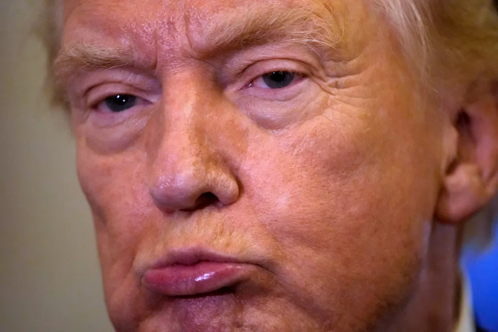 美国总统川普6日搭乘空军1号总统专机,从马里兰州安德鲁联合基地(Joint Base Andrews)飞往佛州西棕榈滩途中,聆听记者提问的神情。 (美联社)