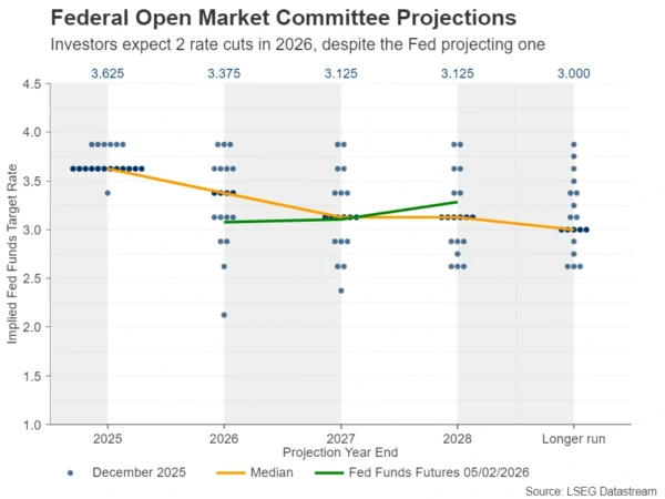 尽管如此,川普本人对激进降息近乎痴迷,而沃什此次可能表现出了不同的立场信号。无论如何,随着ISM制造业PMI意外上行、服务业报告中的价格分项指数攀升,但ADP私营就业报告显示1月就业增长低于预期,投资者仍坚信美联储今年可能需要进行两次各25个基点的降息。