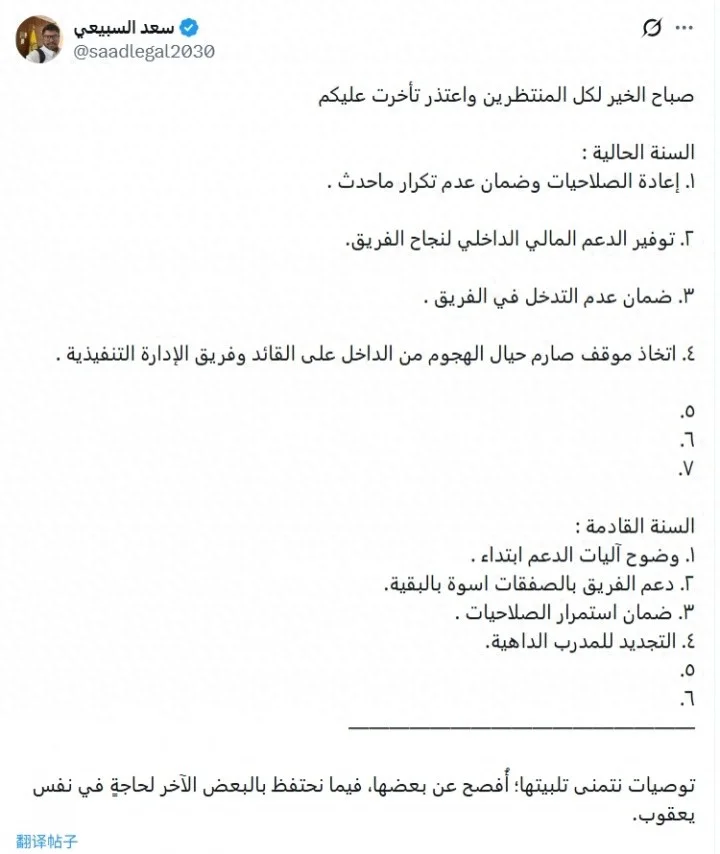 据该媒体的记者表示,C罗提出的13条要求当中包括了:恢复胜利管理层的权限,并确保不再发生过去发生的事件、为球队的成功提供内部财政支持、保证不干涉球队事务、对内部针对队长和执行管理团队的攻击采取严厉立场这些需要在今年内达成的条件,以及需要在明年做到的要求:从一开始就明确支持机制、通过转会引援支持球队,引援与其他球队保持同等水平、确保权限的持续性、与教练若热·热苏斯续约。