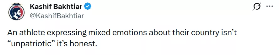“运动员表示对他们的国家感情复杂,并非‘不爱国’,而是诚实(的表达)。” ↓