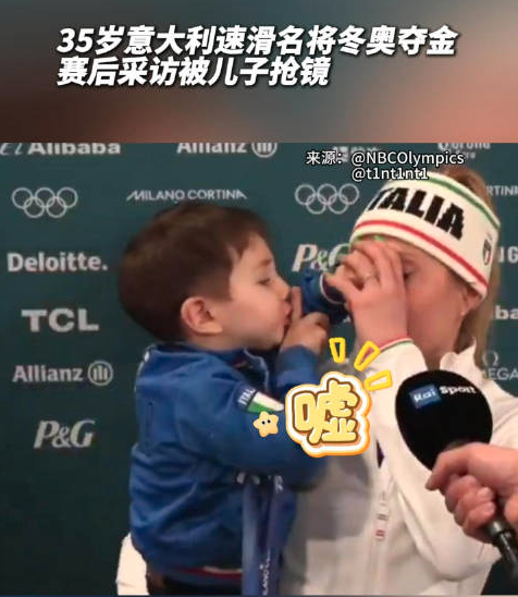 当地时间2月7日,35岁意大利速度滑冰选手弗兰切丝卡・洛洛布里吉达,在米兰冬奥会夺得女子3000米金牌。夺冠后她抱着儿子接受采访,小宝贝在怀里不停扭动,奶声奶气的喊 “妈妈,快停下,嘘!”,成全场焦点。