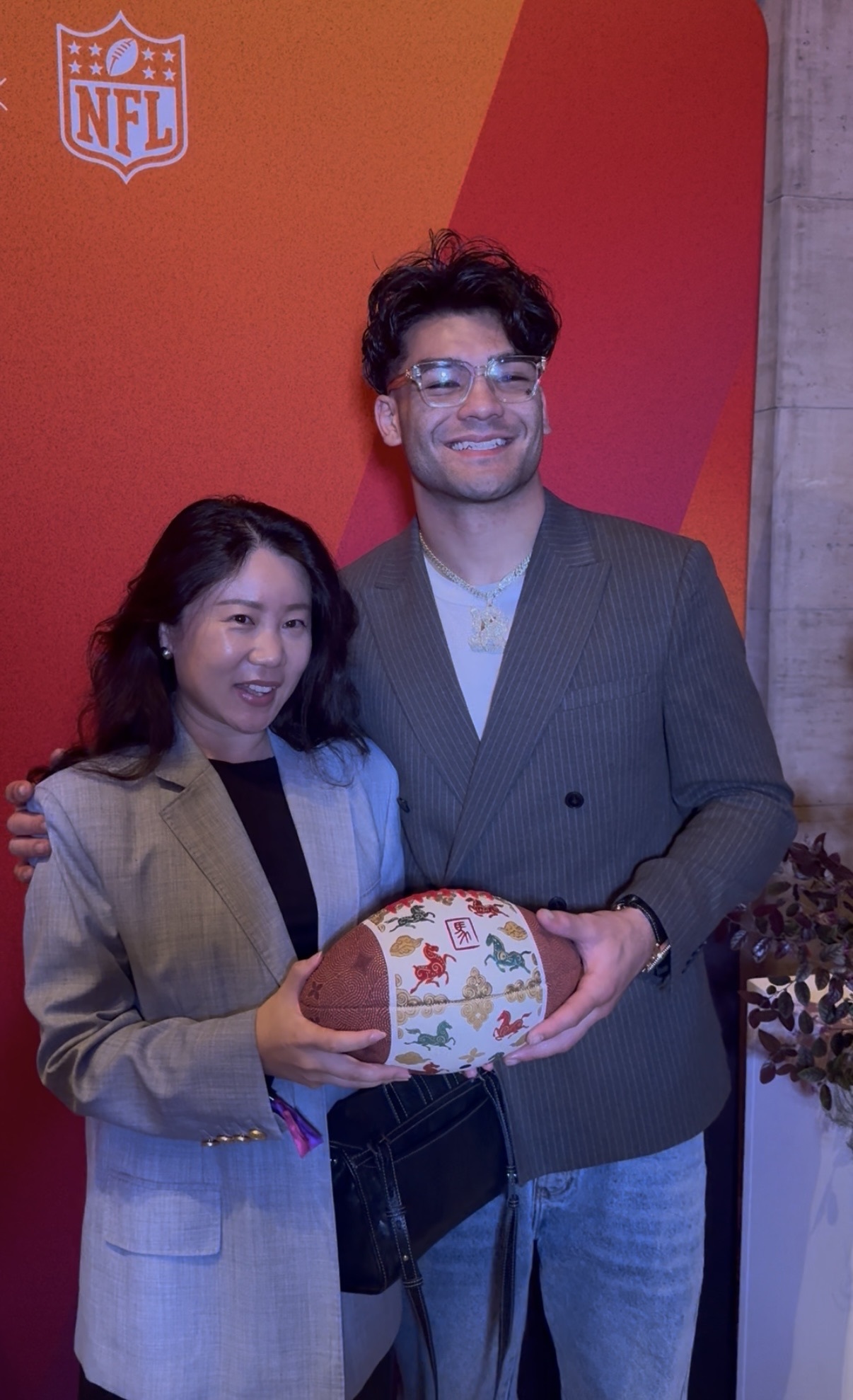 现场迎来洛杉矶公羊队主力外接手Puka Nacua。作为NFL近年最受瞩目的新生代球星之一,他的出现象征亚裔与多元背景运动员在联盟中的崛起,也让不少与会者直呼很有代表性。