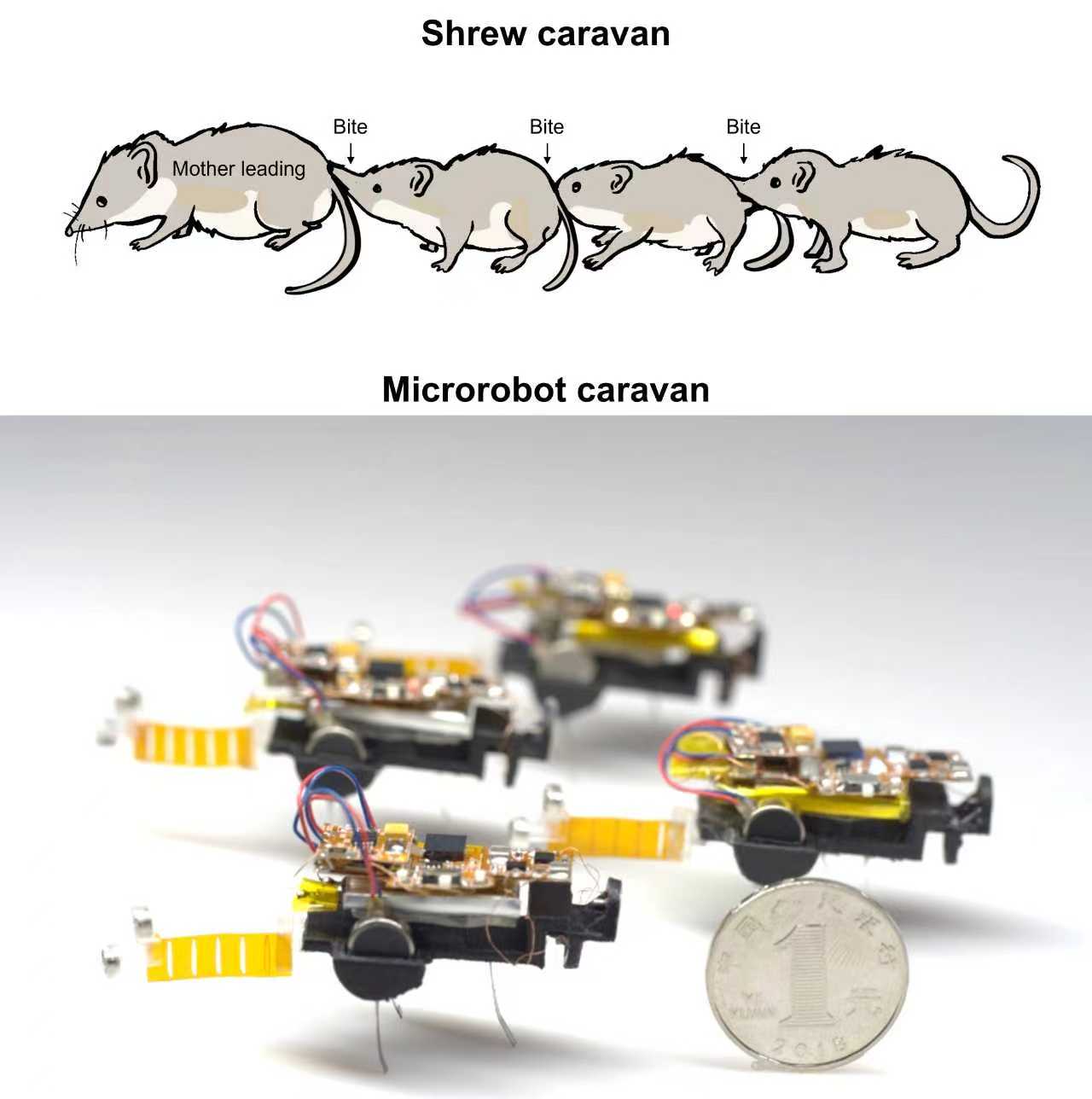 鼩鼱群体在集体移动时展现出独特的“咬尾成串”行为,更为团队设计“可重构、可协作”的微型机器人带来重要启发。