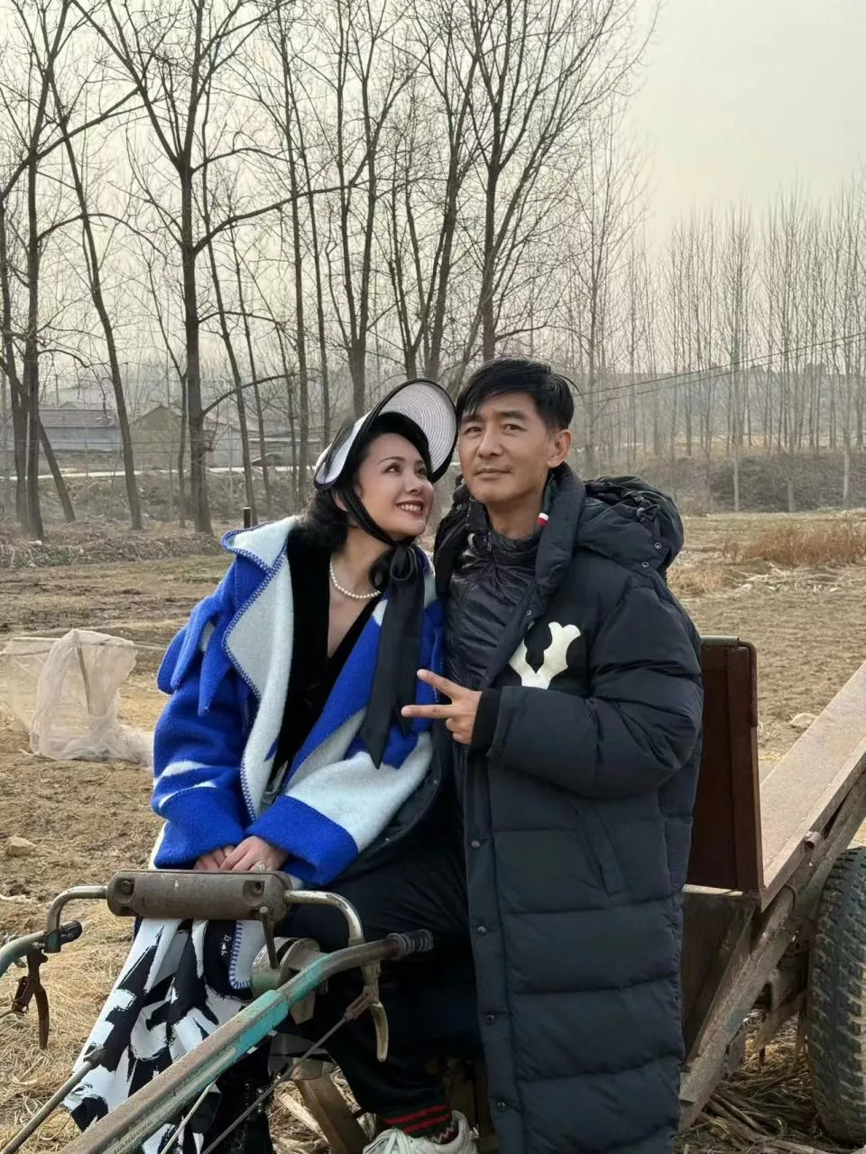 程莉莎晒出和老公与手扶拖拉机的合照,呈现一种很反差的审美,效果醒目。