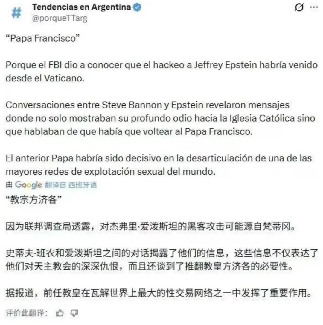 而爱泼斯坦和他的朋友们,对这位左派出身的教皇恨之入骨。