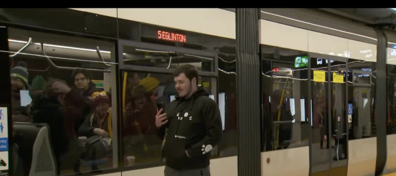 CP24直播报道了从首班列车出站到乘客的实时反应与反馈。