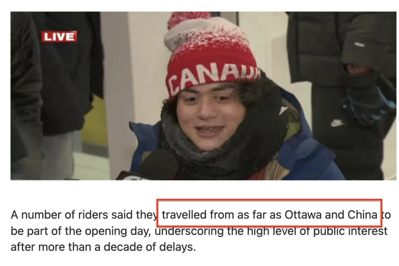 还有乘客表示,他们从渥太华甚至中国赶来,只为见证这条延误十多年的线路通车首日。