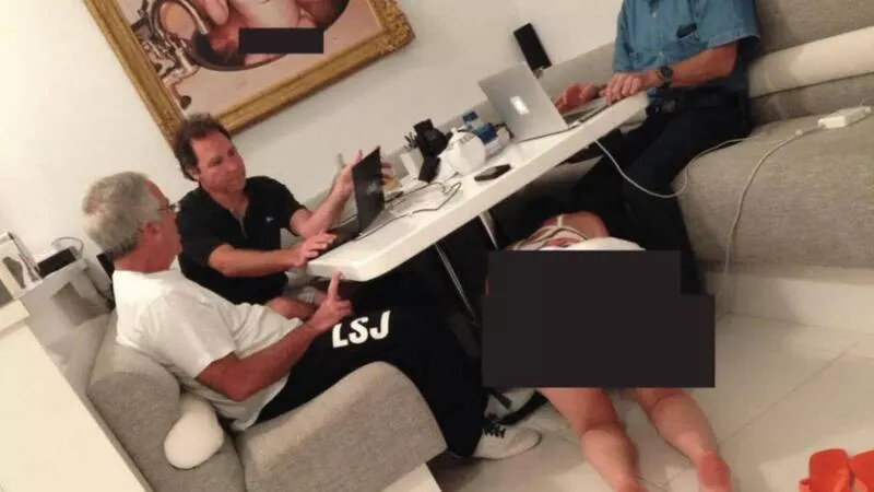 艾泼斯坦档案新恶照:3男桌下惊见比基尼女跪爬