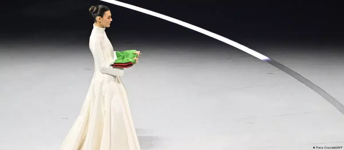 (德国之声中文网)2026年2月6日欧洲时间20时许,身着纯白高定礼服的意大利超模维多利亚·切蕾蒂(Vittoria Ceretti)手捧意大利国旗,缓步走上第25届米兰冬奥会的开幕舞台。