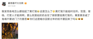 近日,中国大陆多地挂起了过去祭祀用的“黄灯笼”,引发舆情炸锅。(视频截图)