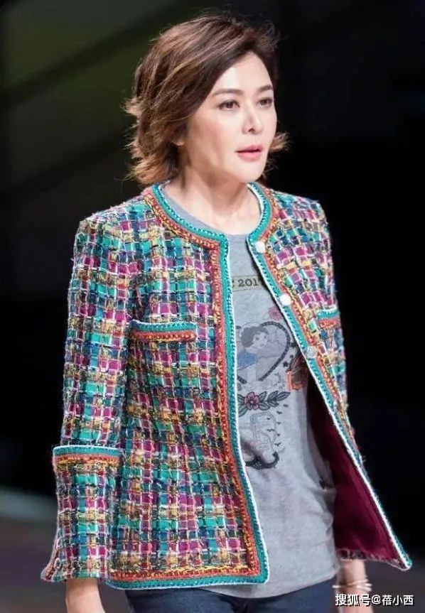 当关之琳身着一身彩色粗花呢外套走上T台时,全场的目光瞬间被她牢牢吸引,不同于机场造型的松弛随性,这次她以知性优雅的姿态诠释了成熟女性的多元魅力,用一件复古又华丽的外套,打破了大众对“中年穿搭” 的所有刻板印象。