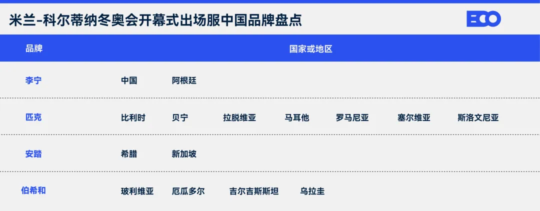 从身着安踏服装、首支出场的希腊体育代表团算起,平均每6支队伍出场,就有1支身着中国品牌打造的战袍----国牌出海这个概念,在本届冬奥开幕式拥有了具象化的表达。