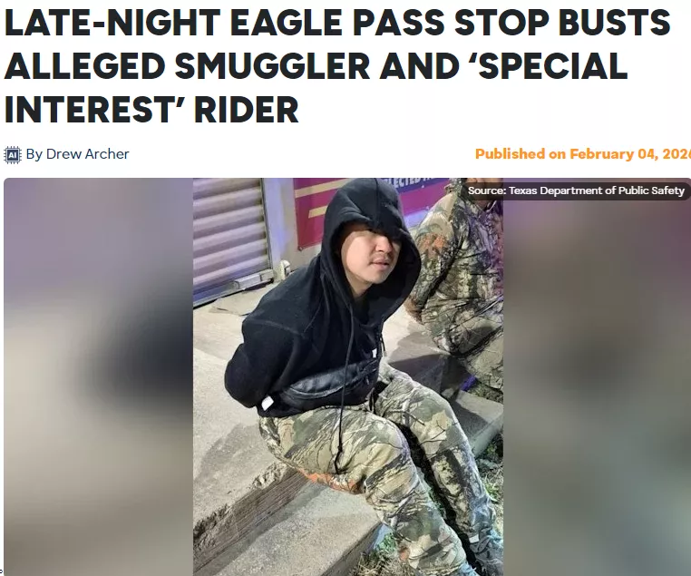 德克萨斯州公共安全部(Texas DPS)近日通报,一起发生在美墨边境附近的深夜交通拦查行动,揭开了一起人口走私案件。一名尼加拉瓜籍司机被当场逮捕,车内4名无证移民被移交联邦边境执法部门,其中包括一名来自中国的男子。