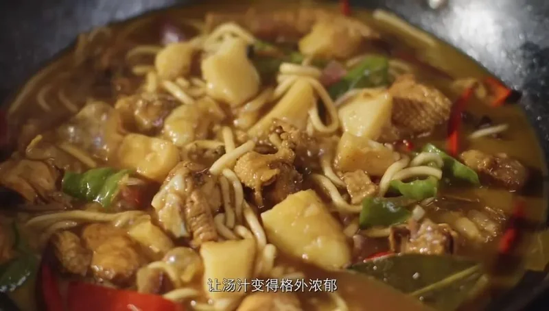 一方水土养一方人,食物亦然。在甘肃,尤其是靠近新疆的河西走廊一带,大盘鸡展现出了一种“折中”的智慧。甘肃本地丰富而优质的面粉,让“宽面”的模样得以保留,甚至变得更宽、更薄。但在调味上,甘肃师傅们可能不会像新疆那样依赖纯粹的辣椒和花椒,而是撒入少许本地产的孜然,或者用甘肃产的甘谷辣椒替代部分新疆辣椒,辣味变得更为醇厚焦香。鸡肉的选用也更灵活,介于土鸡与三黄鸡之间,追求一种紧实与嫩滑的平衡。