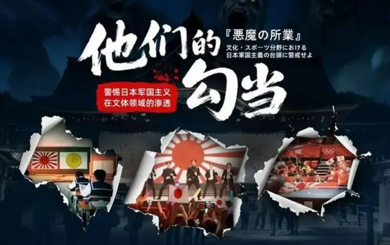 中国军网在网站上与其微信公众号发表题为“他们的勾当—警惕日本军国主义在文体领域的渗透”的文章。