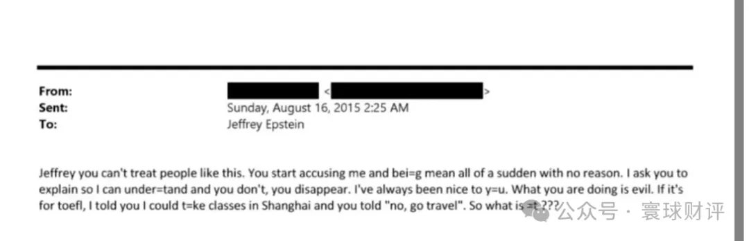 那个指责爱波斯坦玩失踪的下午,或许就是这位杨女士人生中离真相最近的一刻。她意识到自己面对的不是一段感情,甚至不是一个正常的合作伙伴,而是一个深不见底的黑洞。