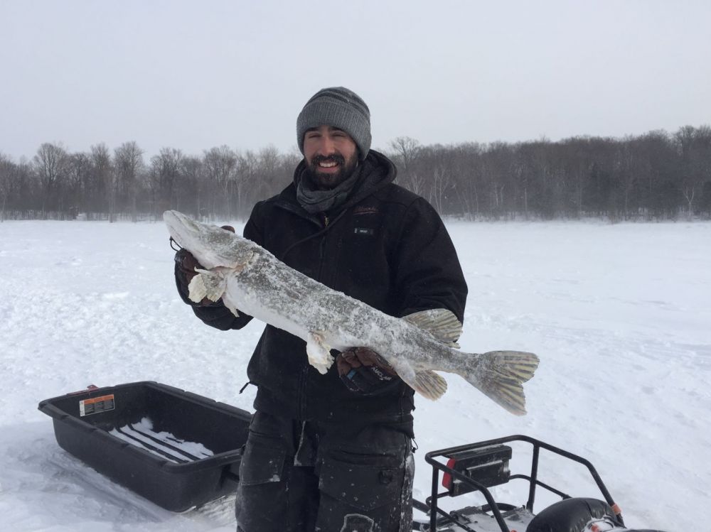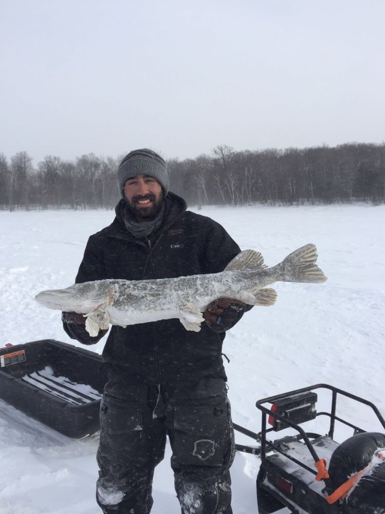 昨天河湾里除了玩儿滑板儿风帆的,还有冰钓小哥。开了雪摩托,带了挡风帐篷,钻了冰洞, 开钓。好奇地跑过去看看是不是真能钓上鱼来。小哥兴高采烈地展示他的斩获,本来只想拍鱼的,他摆pose, 恭敬不如从命。