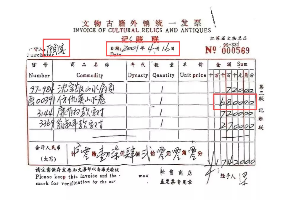 而最重要的是,拍卖价高达8800万元的《江南春》,从江苏省文物总店“卖出去”时,竟然都不是传说中的6800元,而是可怜的2250元。