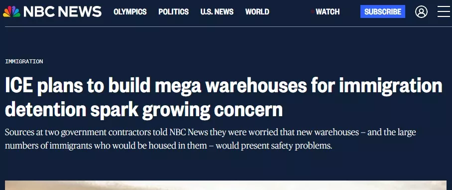 NBC News报道 综合编译|针对美国移民局(ICE)拟建“大型仓库式移民拘留中心”的担忧正在加剧