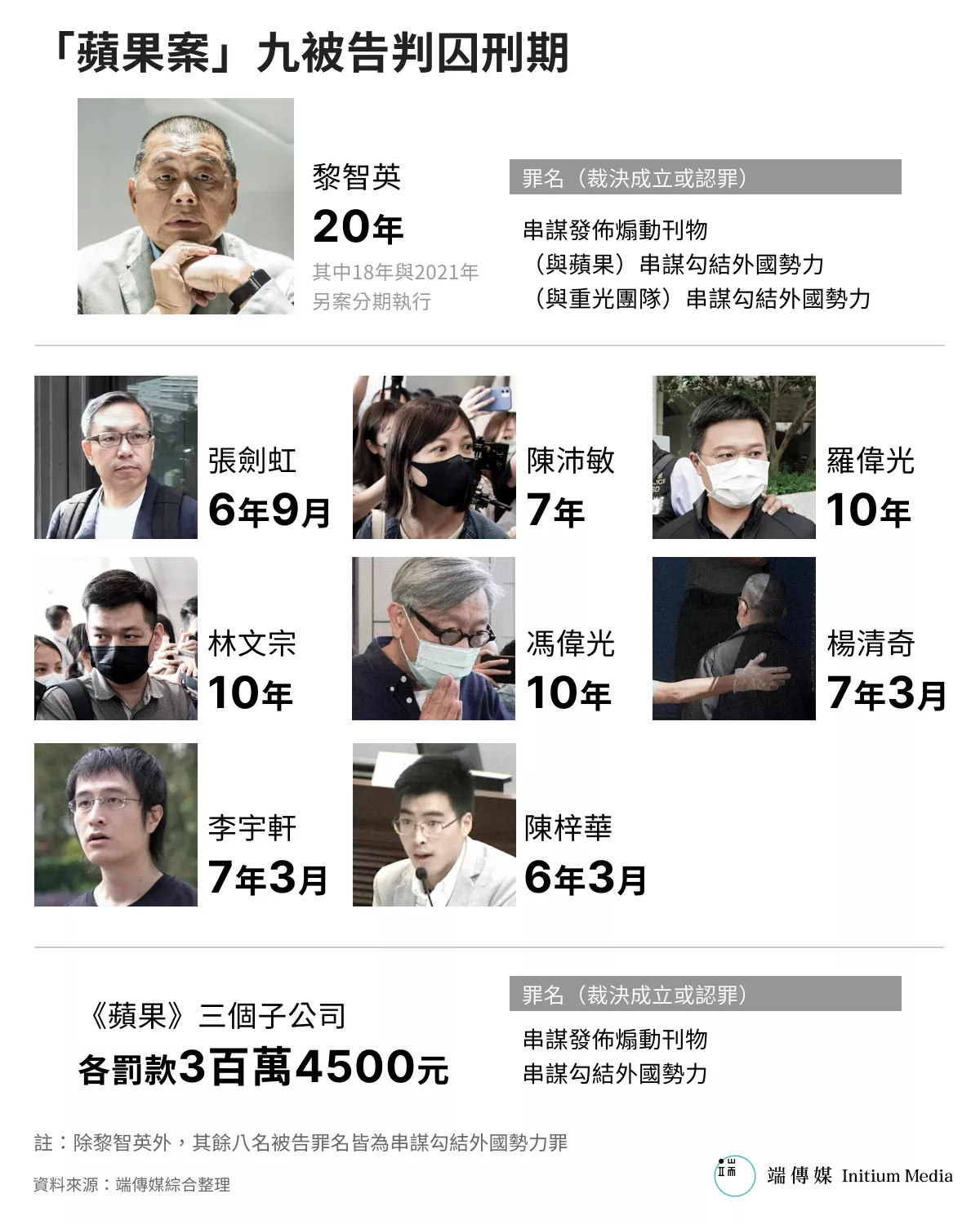 苹果案九名被告判囚刑期: