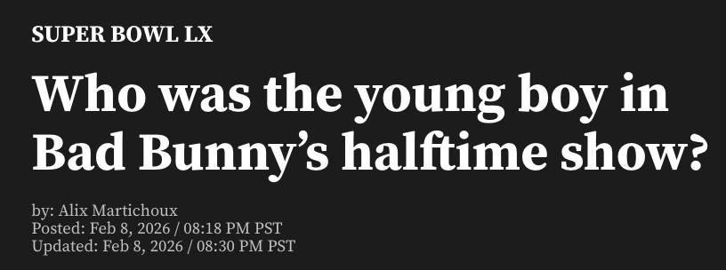 不过事实并非如此。报道称,中场秀中的男孩其实是Lincoln Fox Ramadan,一名来自南加州橙县科斯塔梅萨市(Costa Mesa)的5岁男童,他拥有埃及和阿根廷血统。