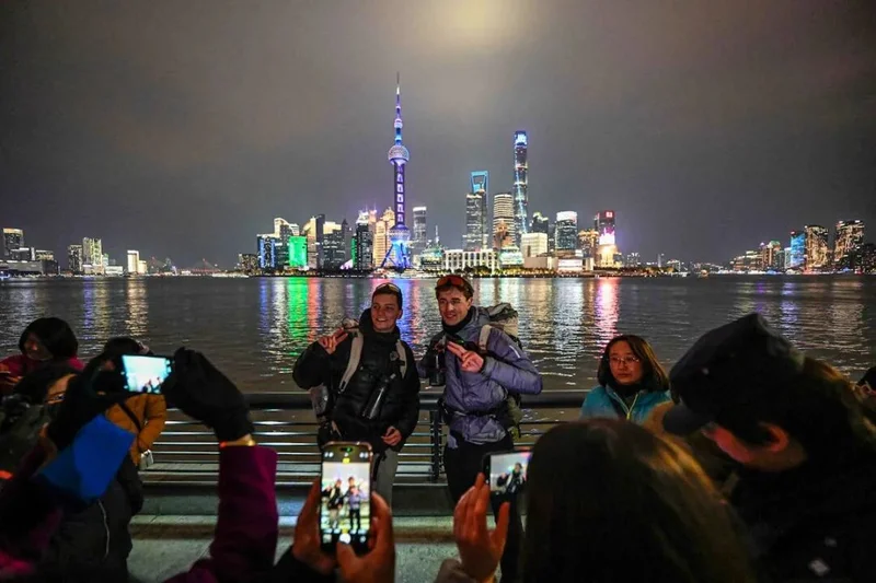 当这两个年轻人踏上外滩观景台,看清对面那片无数次出现在照片里的陆家嘴天际线时,他们停住了。