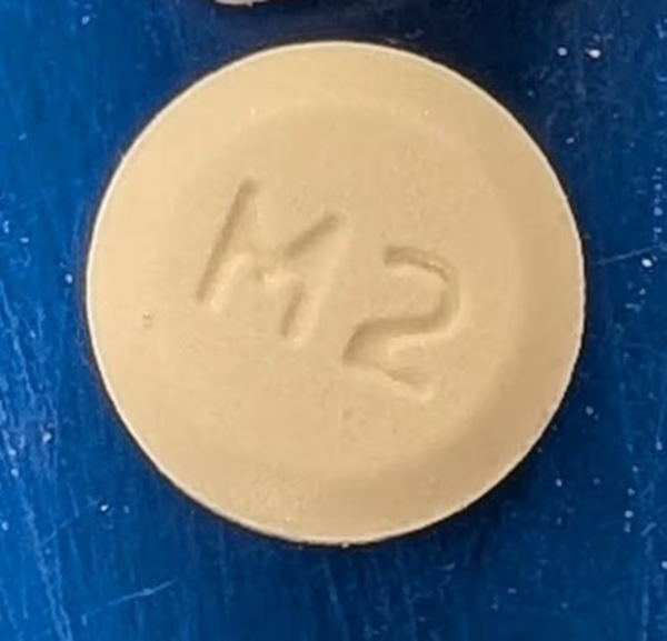 米多君 2.5 毫克片剂为白色圆形,一面印有“M2”,另一面中间有一条线。