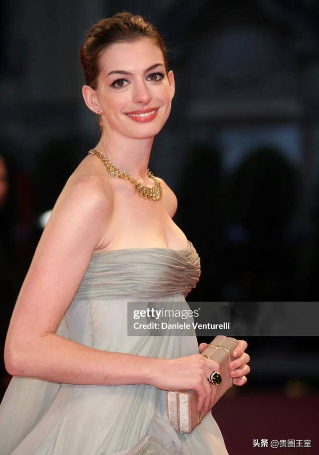 安妮·海瑟薇出席这个晚宴是在2013年期间,是已婚状态,当时她和丈夫亚当·舒尔曼结婚不到一年时间,确实31岁的安妮·海瑟薇处于颜值巅峰时期~