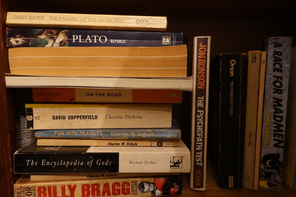 仔细看了一下书架上的书,认出了一些名著,比如:卡夫卡的《审判》