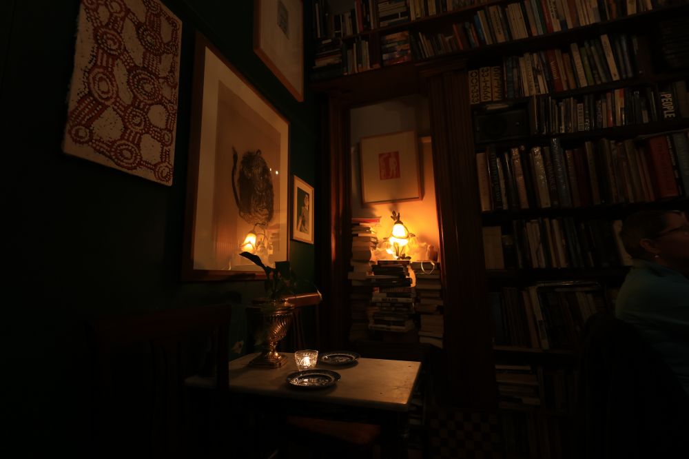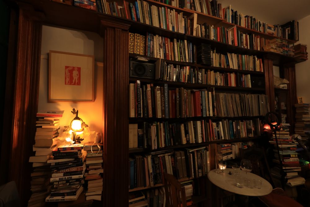 四壁摆满了文学、艺术、哲学、历史与绘画类书籍,像是一间可以坐下来慢慢生活的地方,而不只是吃饭的空间。我心里想,要是我住在这附近就好了,我愿意每天来这里买杯咖啡,取一本喜欢的书,一边品咖啡,一边吸取书本知识和营养。