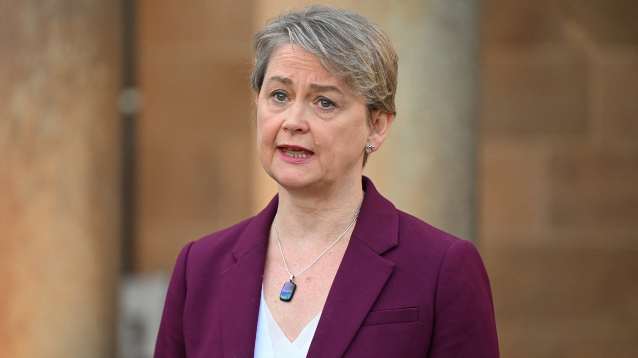 2025年10月9日,英国外交大臣顾绮慧(Yvette Cooper)于北爱尔兰贝尔法斯特(Belfast)参与会议前,向媒体发表讲话。(Reuters)