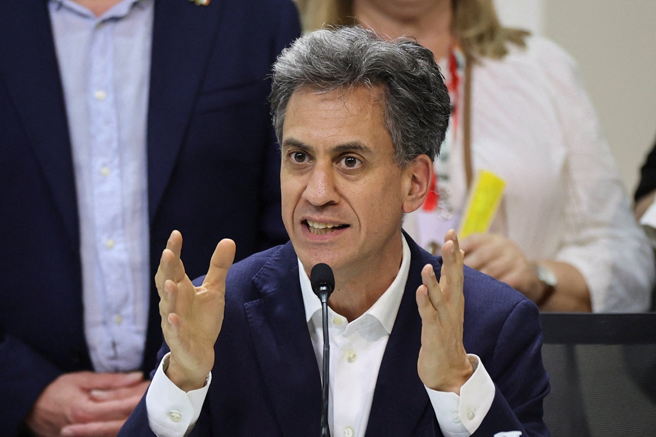 2025年11月18日,巴西贝伦,英国能源安全大臣文立彬(Ed Miliband)在联合国气候变化大会(COP30)上发表联合声明。(Reuters)