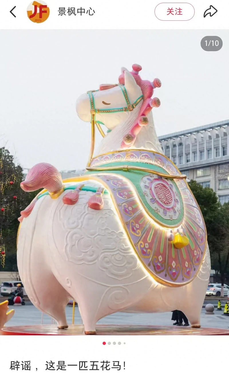 临近春节,一匹肥硕圆润的小马雕像在南京走红。巨大的白色小马身披华丽马鞍,昂首矗立在商场前,吸引众多路人合影打卡,还有网友称其为“南京最火的小胖马”。