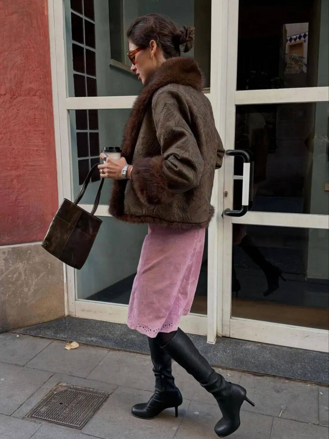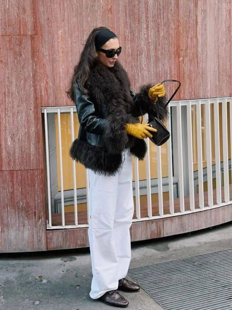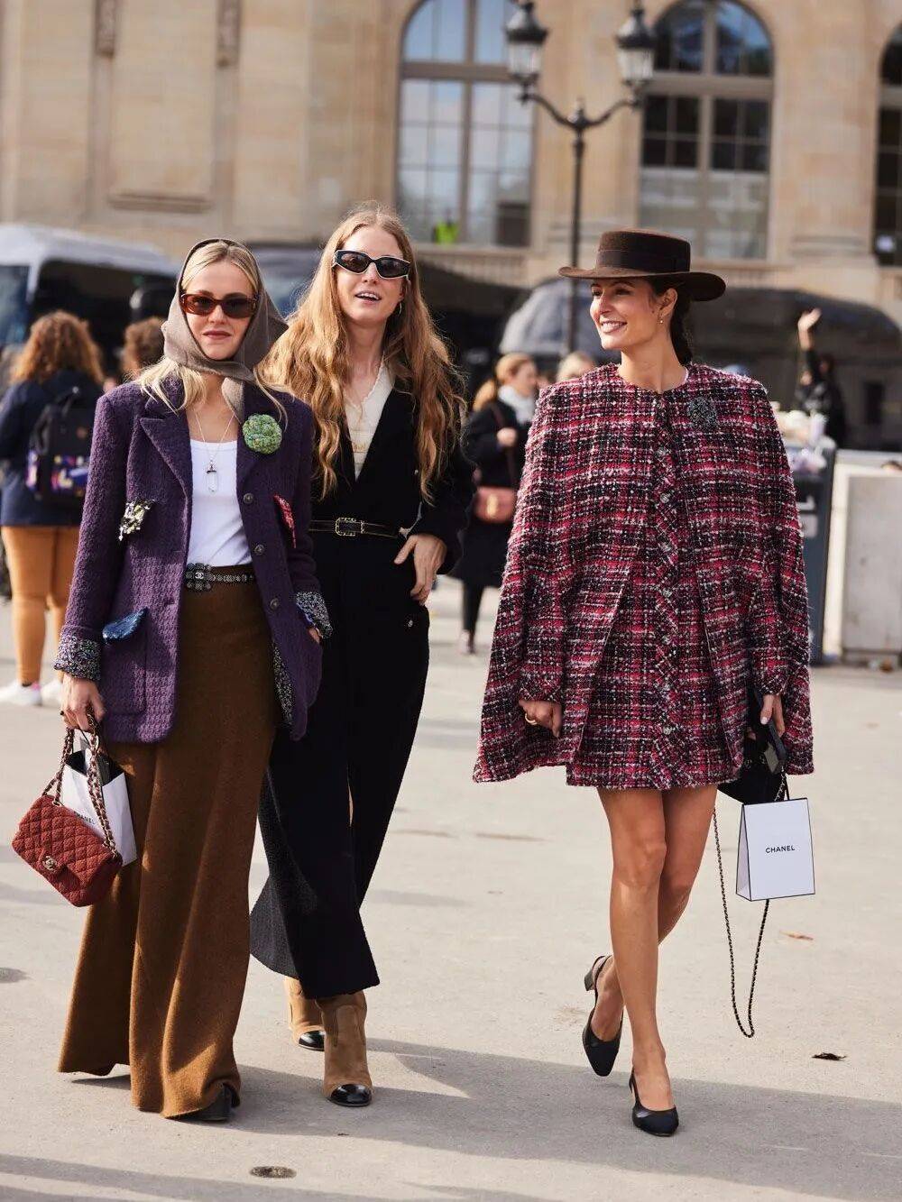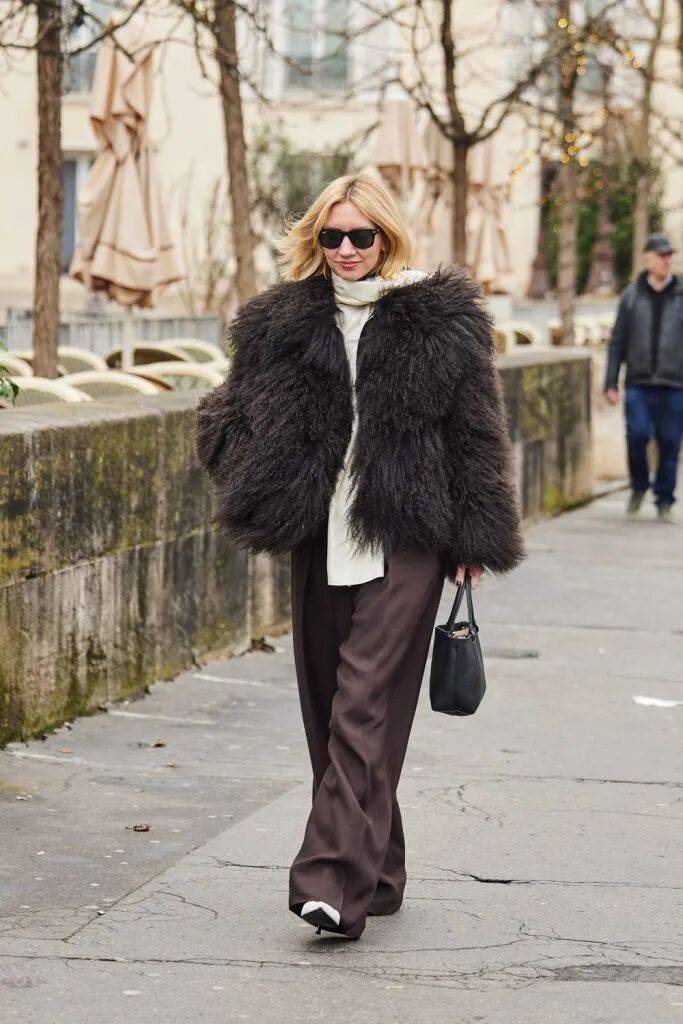 线条利落的vintage大衣、老皮草外套,搭配优雅精美的小裙子,颜色别致的花呢外套、高跟鞋搭配简约的针织内搭......