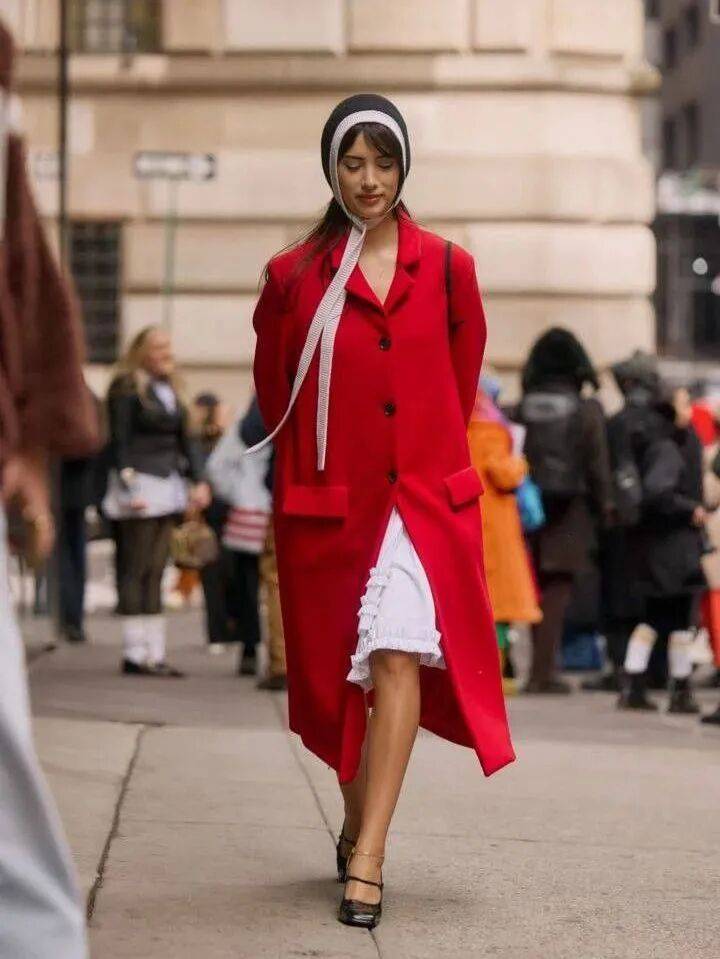 但时髦小姨穿红色很有一套,绝不是堆砌大红色单品在身上。