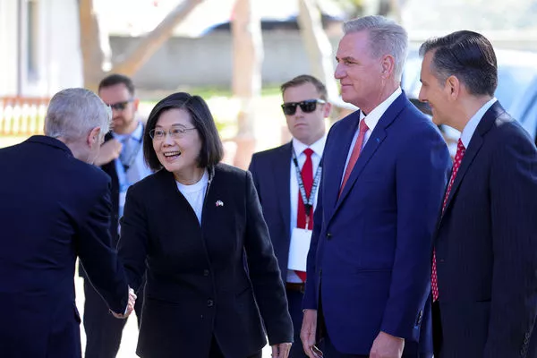 ▲前总统蔡英文2023年会见美国众议院议长麦卡锡(Kevin McCarthy)。(图/路透)