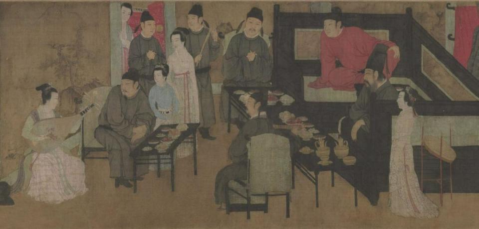 南唐后主李煜即位后,听说韩熙载在家自暴自弃,感到将信将疑,于是命画家顾闳中夜入韩宅,一探究竟。顾闳中记忆过人,技艺更是超群,回来后将韩熙载家中宴饮的画面悉数还原,成千古名画《韩熙载夜宴图》。