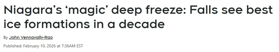 Niagara Parks Commission首席执行官David Adames表示:“我们看到的是至少十年来最好的冰封景观。”
