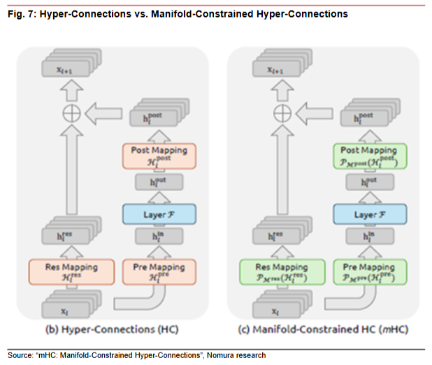 全称为“流形约束超连接”。它旨在解决Transformer模型在层数极深时,信息流动的瓶颈和训练不稳定的问题。