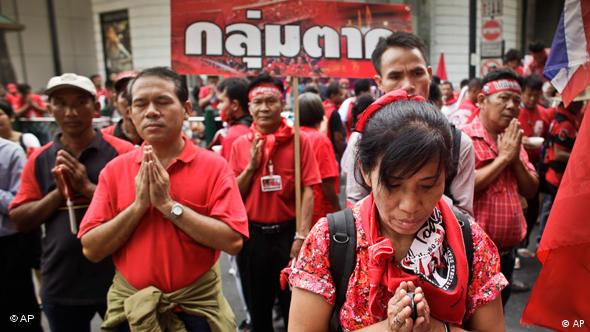 2010年春夏,支持前总理塔克辛的“红衫军”在曼谷发起大规模反政府示威,要求解散国会。图像来源: AP